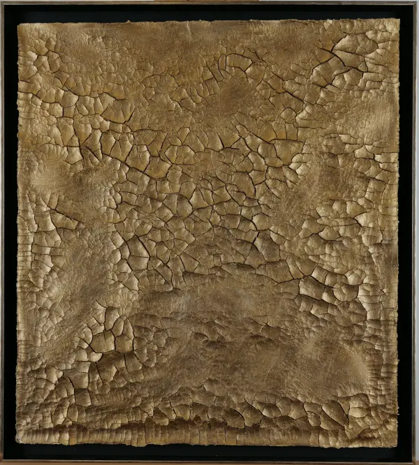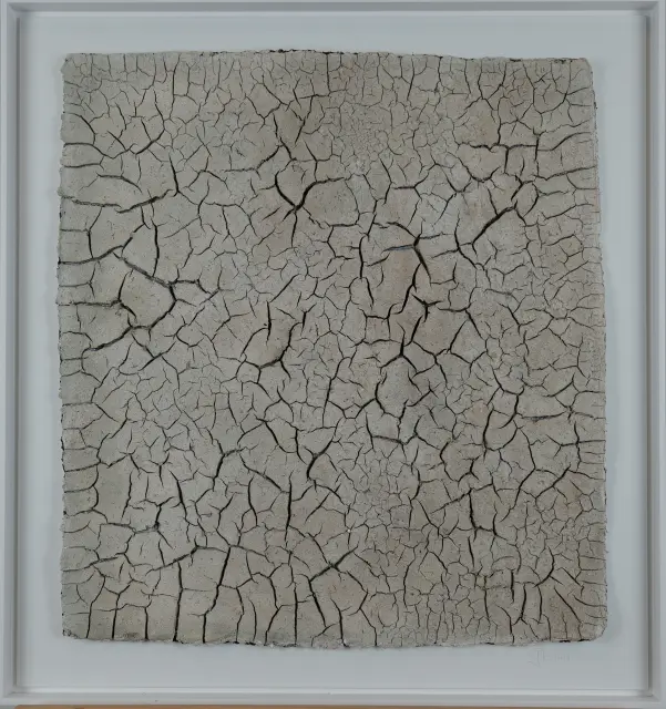 Reiners Arbeiten zeichnen sich durch spannungsreiche Oberflächen aus, die an geologische Formationen, Erosionsprozesse und fragmentierte Landschaften erinnern.